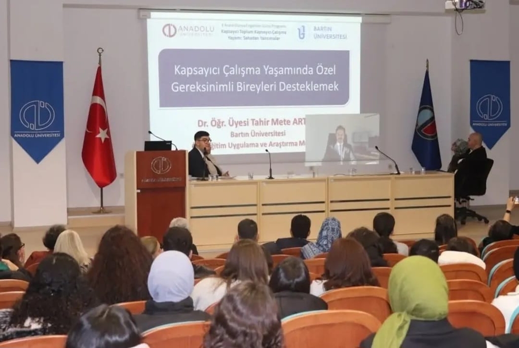 Kurum Müdürümüz Dr. Tahir Mete ARTAR Anadolu Üniversitesi'nin Gerçekleştirdiği Kapsayıcı Toplum Kapsayıcı Çalışma Yaşamı: Sahadan Yansımalar Konulu Etkinliğe Kapsayıcı Çalışma Yaşamında Özel Gereksinimli Bireyleri Desteklemek Konulu Sunu Gerçekleştirdi